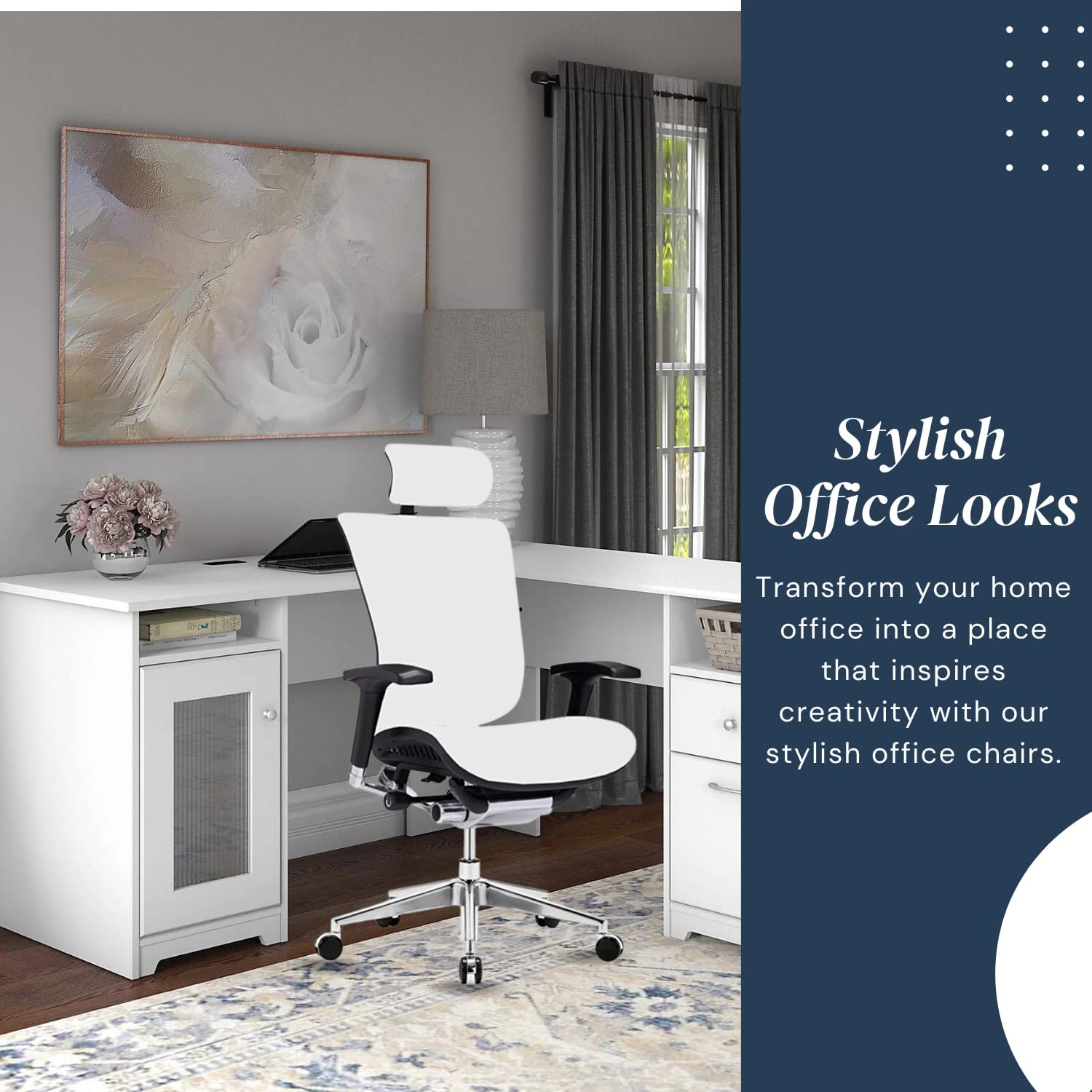 Executive desk chair is high enough to support the entire back. Height adjustable backrest Lumbar support hugs your lower back and enhances the natural curve of your spine. The pneumatic adjustment lever will allow you to easily adjust the seat to your desired height. Adjustable tilt tension, greatly helps eliminate leg fatigue. adjustable back height, which makes the user more comfortable during work hours. Dual-wheel casters support 360° Swivel freely and move very easily The instructions are very easy to follow, you just need to count a few screws and bolts, and you can assemble it.