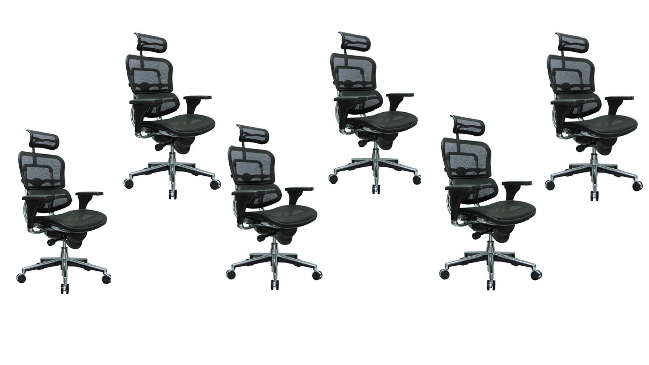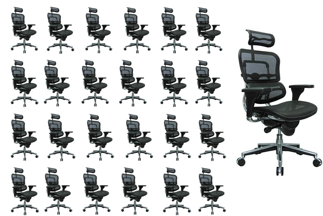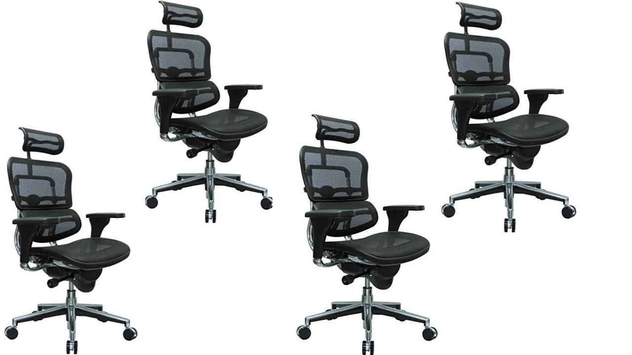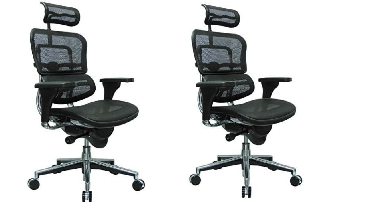 Ergohuman High Back Swivel Chair with Headrest, Black Mesh & Chrome Base