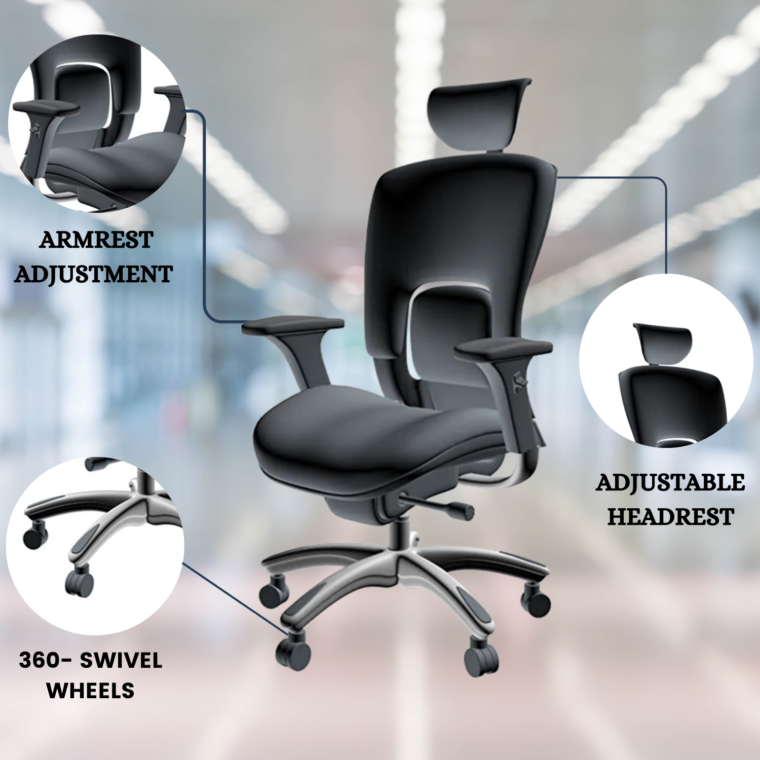 Executive desk chair is high enough to support the entire back. Lumbar support hugs your lower back and enhances the natural curve of your spine. The pneumatic adjustment lever will allow you to easily adjust the seat to your desired height. Adjustable tilt tension, greatly helps eliminate leg fatigue. adjustable back height, which makes the user more comfortable during work hours. Dual-wheel casters support 360° Swivel freely and move very easily The instructions are very easy to follow, you just need to count a few screws and bolts, and you can assemble it.