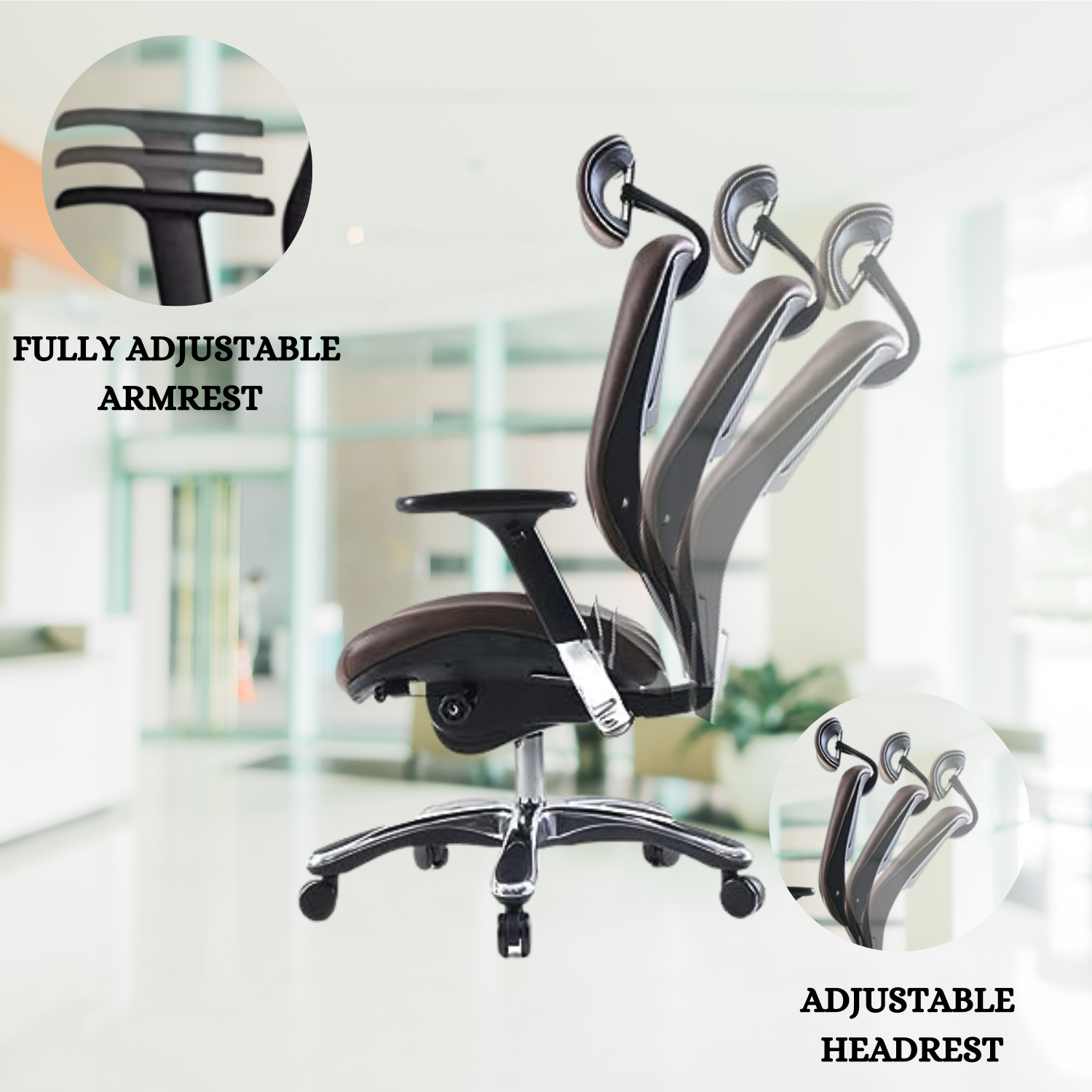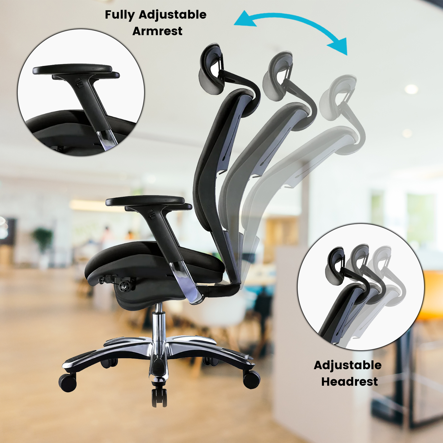- Headrest Height and Angle Adjustment.