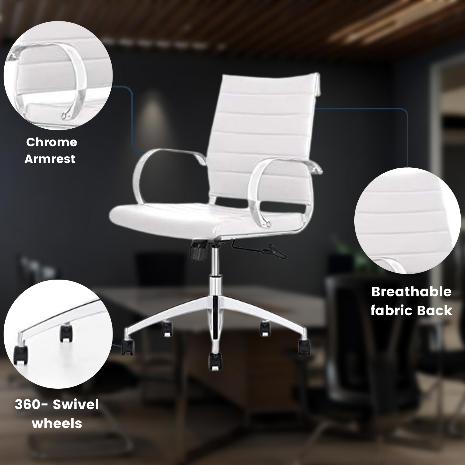 An elegant blend of comfort and style, this ribbed mid-back leather office chair is the perfect seating solution for your workspace. Crafted from black leather with aluminum arms and a base, the ergonomic design brings a sleek look with ample durability and support for long-term use. Designed for exceptional comfort, this ribbed mid-back desk chair features a cushioned seat for softness and durability. We offer high-quality office and home chairs. We only use high-quality materials.